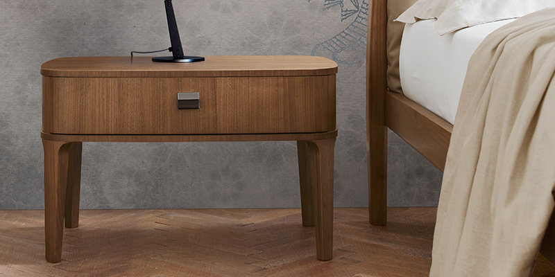 Bedroom storage furniture with a combination of sleek curves and thicknesses