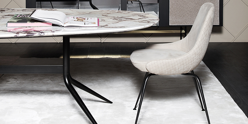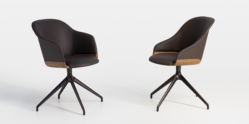 Dining chair and armchair with simple and soft shapes