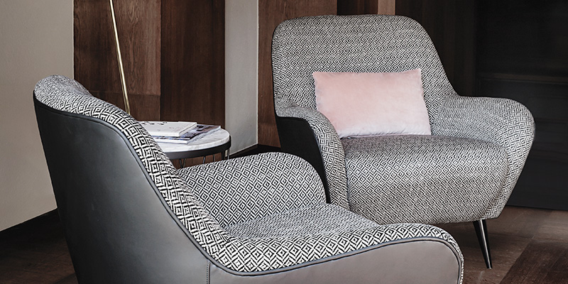 Sectional armchair with a contrasting quilted effect on the back that gives an art deco style