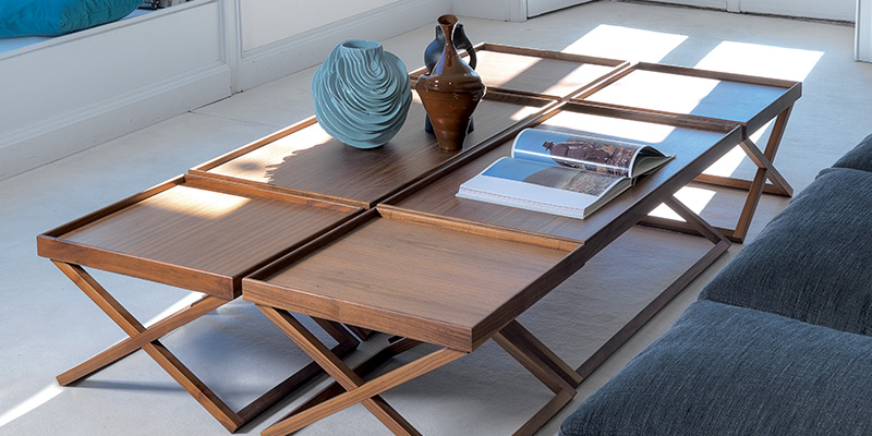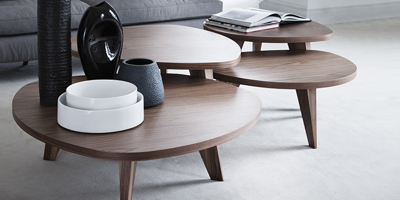 Occasional round and oval coffee tables with handcrafted marquetry details