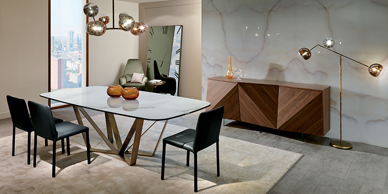In wood available in matt or shiny lacquered finish, Canaletto walnut, silver or gold leaf, satin brass or titanium finish